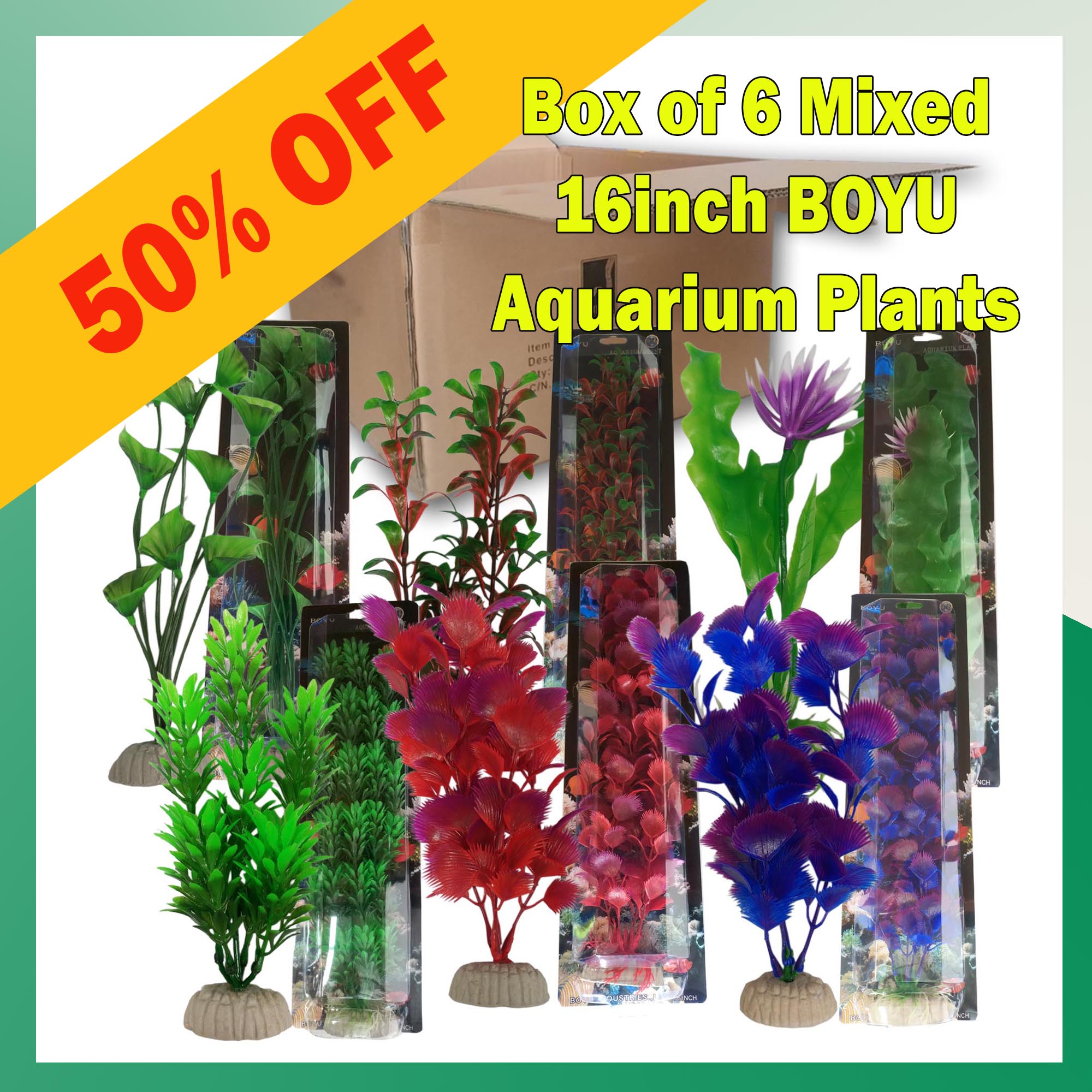 Carton of 6 Boyu Plastic Plants. 16 inch.