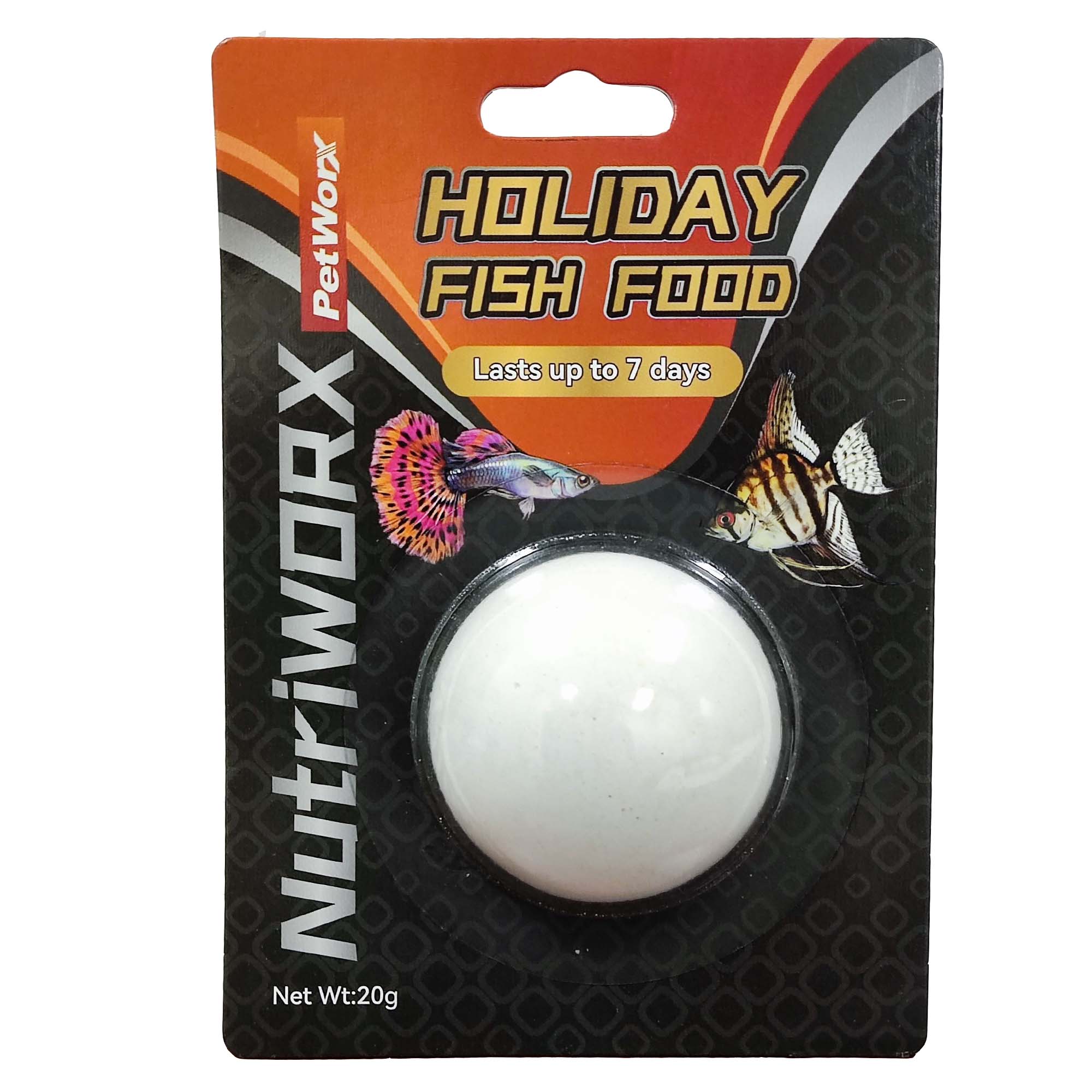 Nurtiworx Holiday Fish Food 20g lasts up to 7 days.
