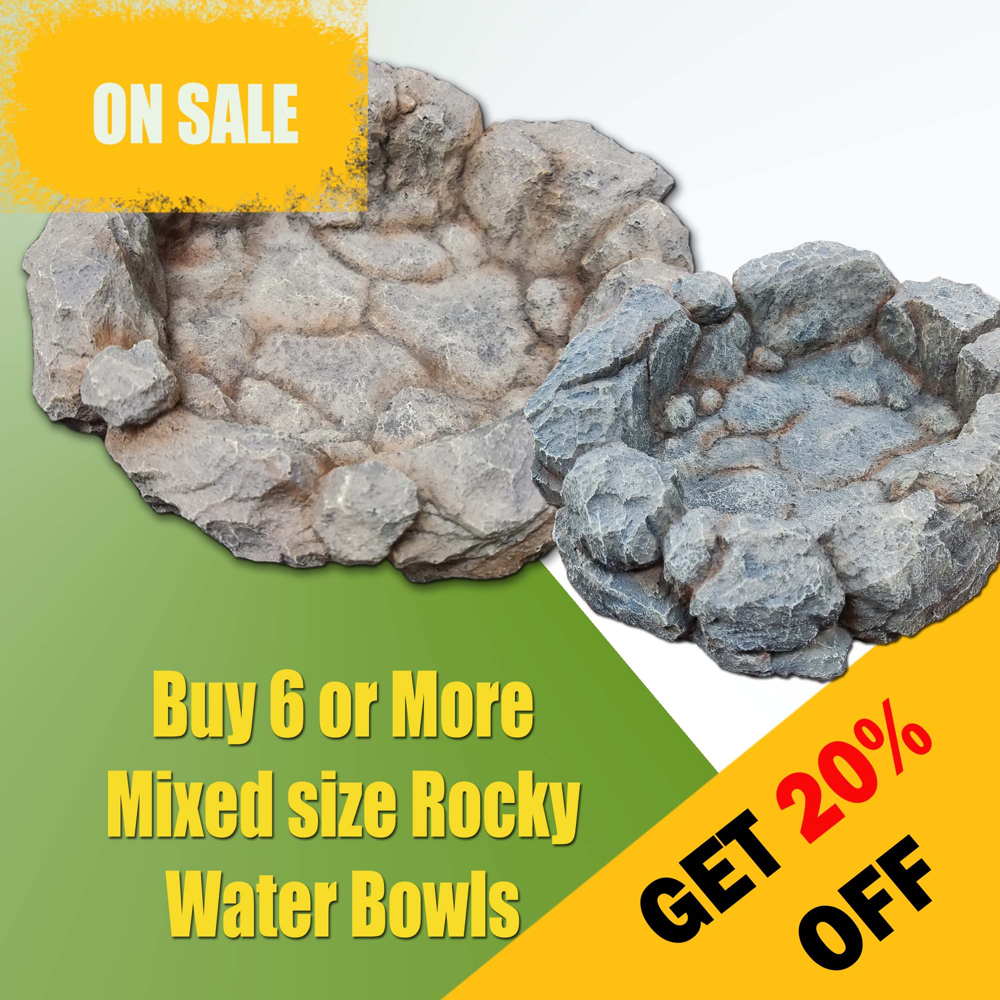 Buy 6+ Mixed size rocky water bowls & Get 20% OFF